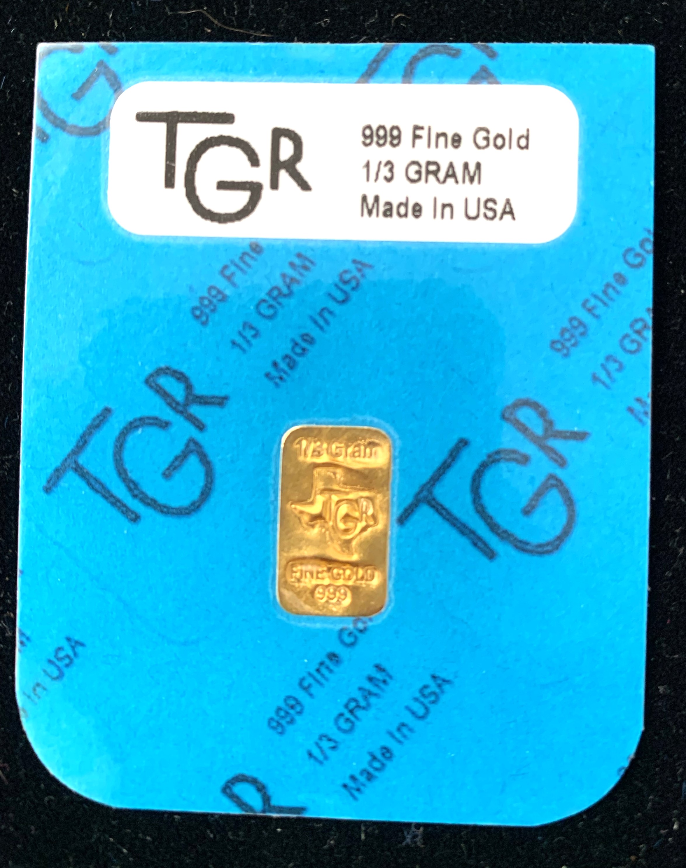 GOLD TEXAS .999 FINE GOLD 1/3 GRAM TGR IN ORIG PKG