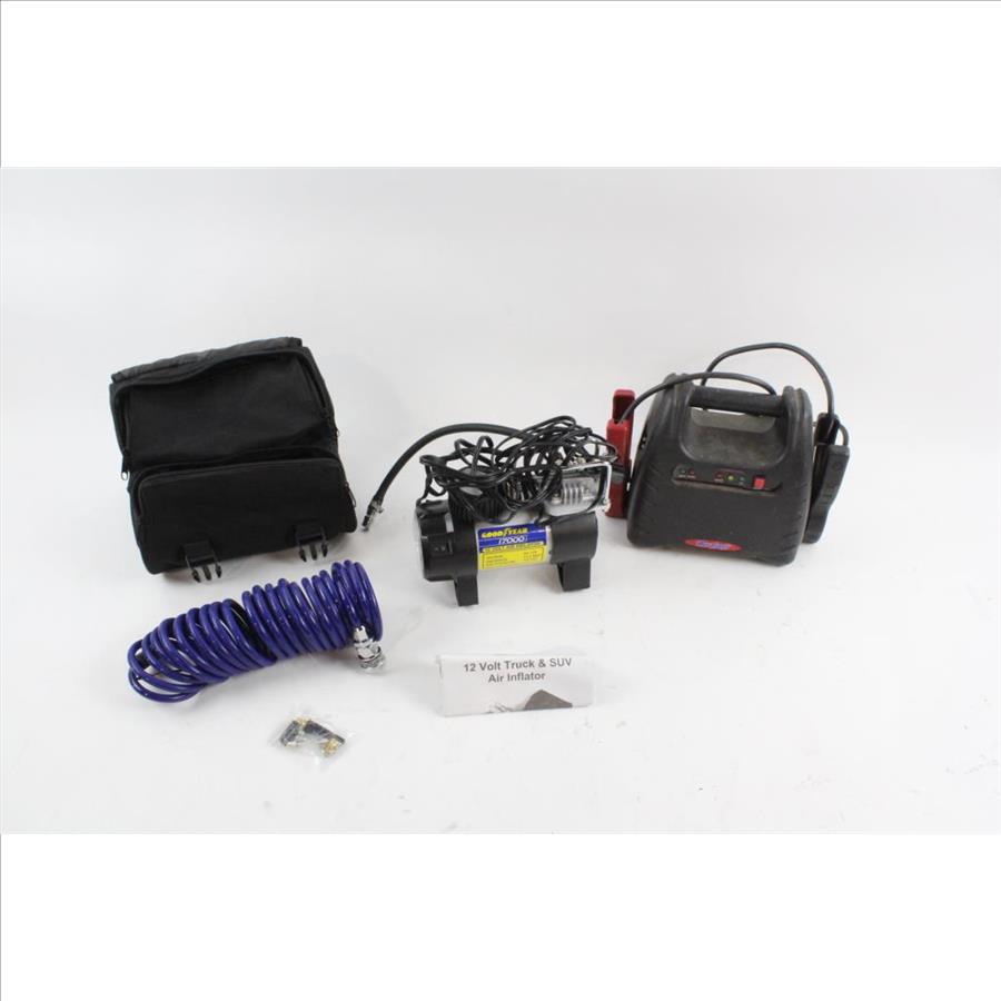 Get a great deal with this online auction for a jump starter and air compressor presented by Property Room on behalf of a law enforcement or public agency client. - GoodYear air compressor, i7000, 130 PSI