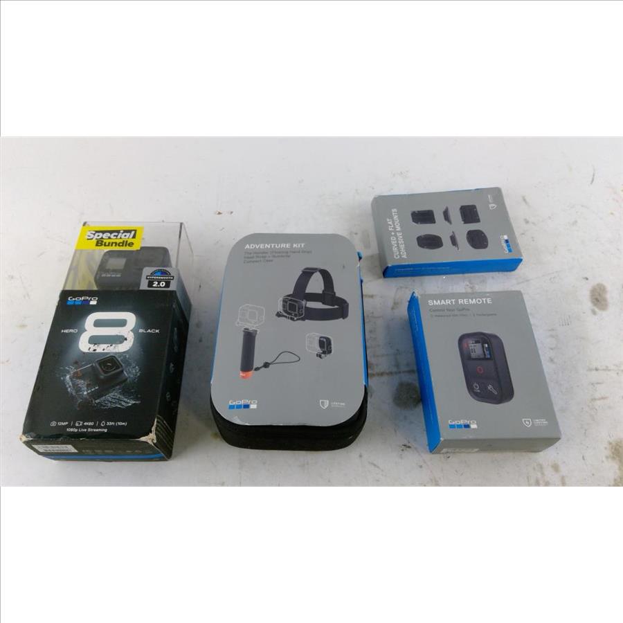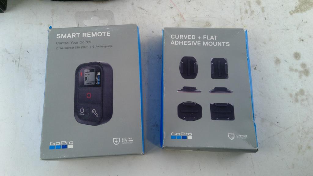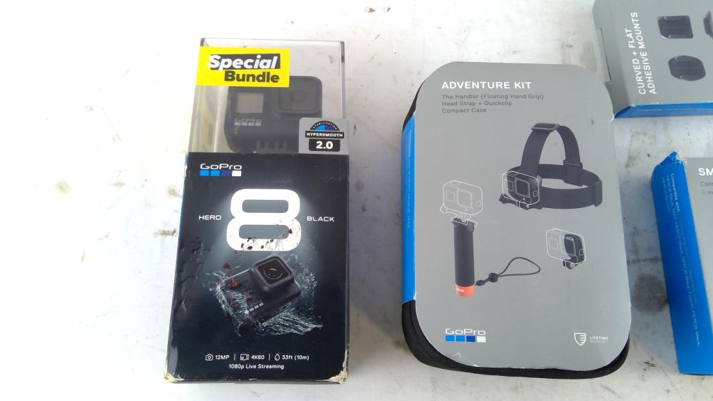 - Gopro hero 8, Gopro smart remote, Gopro Mounts, Gopro adventure kit