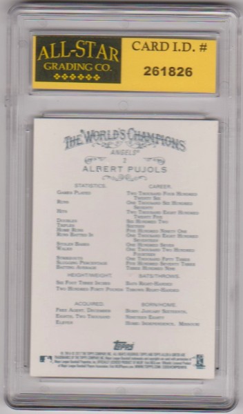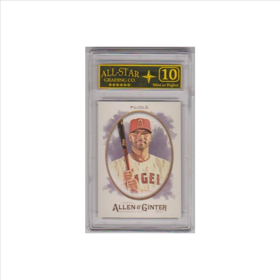 This is a  Albert Pujols 2017 Topps Allen & Ginter #2 card that has been graded a Mint or Higher 10 by ASG.  The holder has some light surface wear, but overall this is a sharp graded card of this future baseball Hall of Famer.
