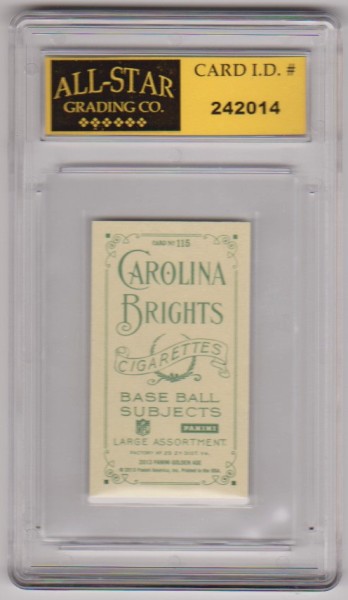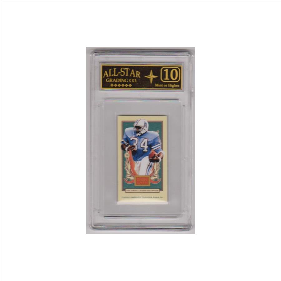 This is a Earl Campbell 2013 Panini Golden Age Mini #115 card that has been graded a Mint or higher 10 by ASG.  The holder has some small light surface scuffs, but overall this is a nice graded card of this NFL Hall of Famer.