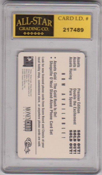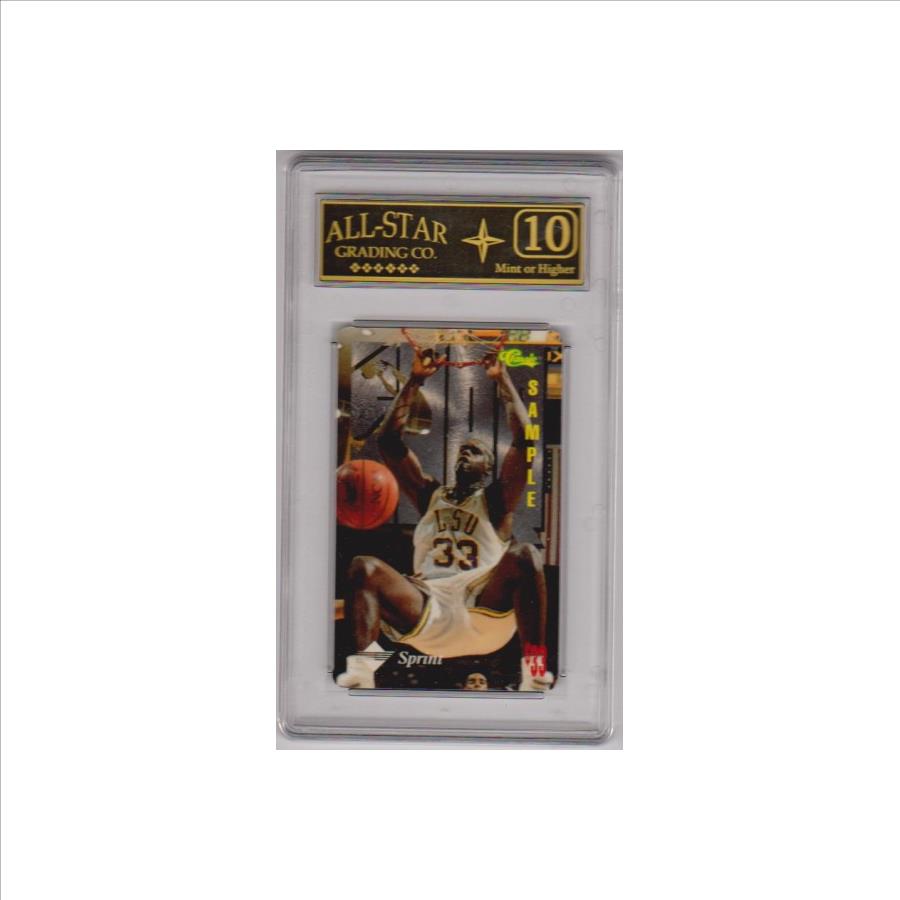 This is a Shaquille O'Neal 1995 Classic $33 Sample Phone card that has been graded a Mint or higher 10 by ASG.  The holder has some light surface wear, but overall this is a nice graded card of this NBA Hall of Famer.