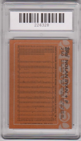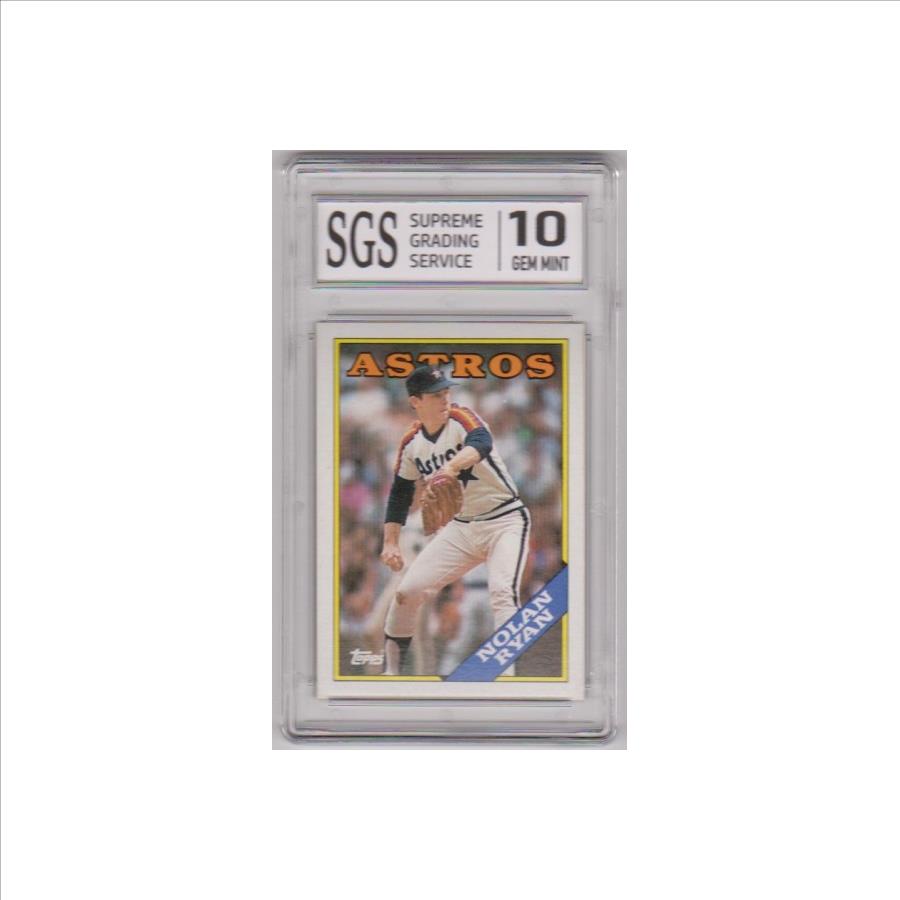 This is a Nolan Ryan 1988 Topps #250 card that has been graded a Gem Mint 10 by SGS. There is some minor surface wear on the back of the holder, but overall this is a nice looking graded card of this legendary Hall of Famer.