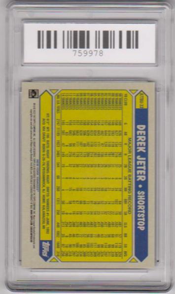 This is a Derek Jeter 2022 Topps 35th Anniversary #87TBU-33 Insert card that has been graded a Mint 9 by SGS.  This is a sharp graded card of this baseball Hall of Famer.