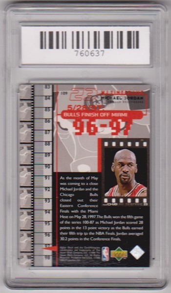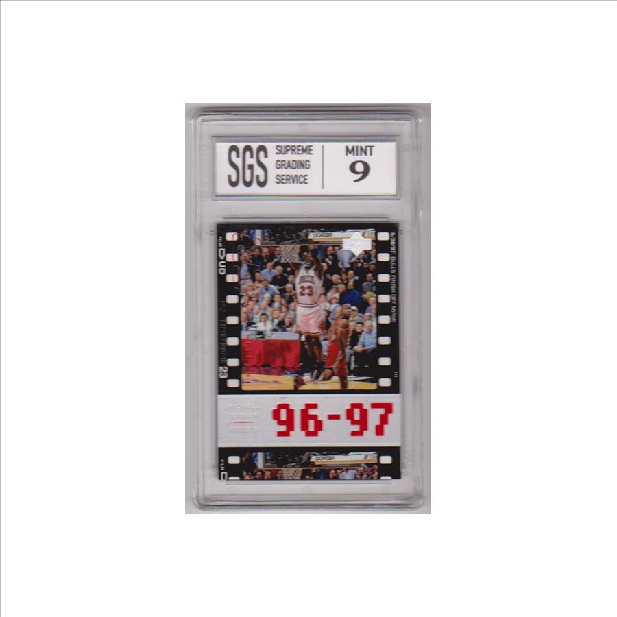 This is a Michael Jordan 1998 Upper Deck Living Legends #109 card that has been graded a Mint 9 by SGS.  This is a sharp graded card of this basketball Hall of Famer.