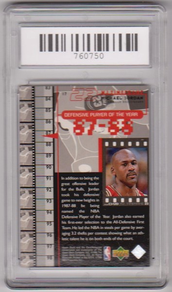 This is a 1998 Upper Deck Living Legends Michael Jordan #17card that has been graded a Mint 9 by SGS. This is a sharp graded card of this NBA Hall of Famer.