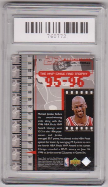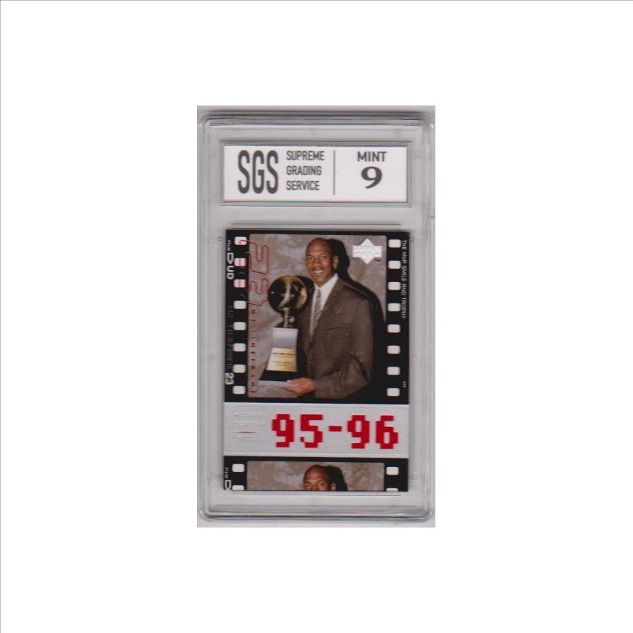 This is a Michael Jordan 1998 Upper Deck Living Legends #93 card that has been graded a Mint 9 by SGS.  The holder has some light surface wear, but overall this is a sharp graded card of this legendary Hall of Famer.