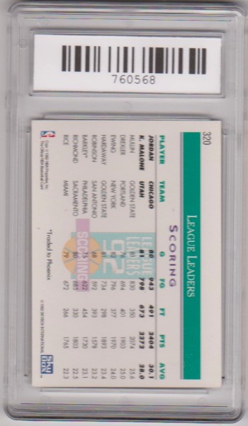 PropertyRoom.com's trusted merchant, Sports Collectibles, presents this online auction for the above Graded Mint 9 - Michael Jordan/Karl Malone 1992-93 Hoops #320 Card.
