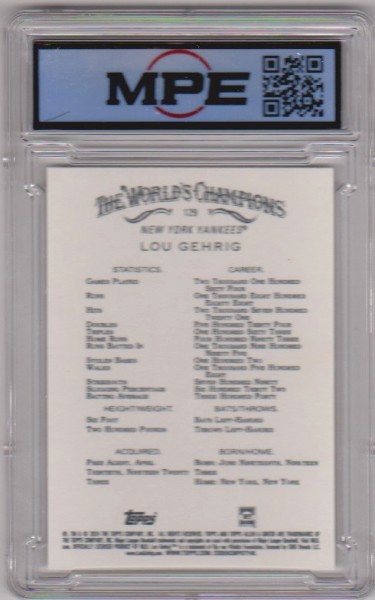 This is a Lou Gehrig 2024 Topps Allen & Ginter #129 card that has been graded a Mint+ 9.5 by MPE. The holder has some light surface wear, but overall this is a nice graded card of this baseball Hall of Famer.