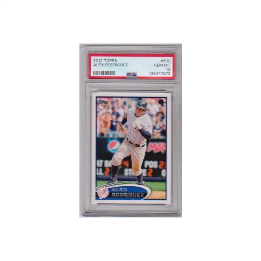 PropertyRoom.com's trusted merchant, Sports Collectibles, presents this online auction for the above Graded PSA Gem Mint 10 - Alex Rodriguez 2012 Topps #500 Card.