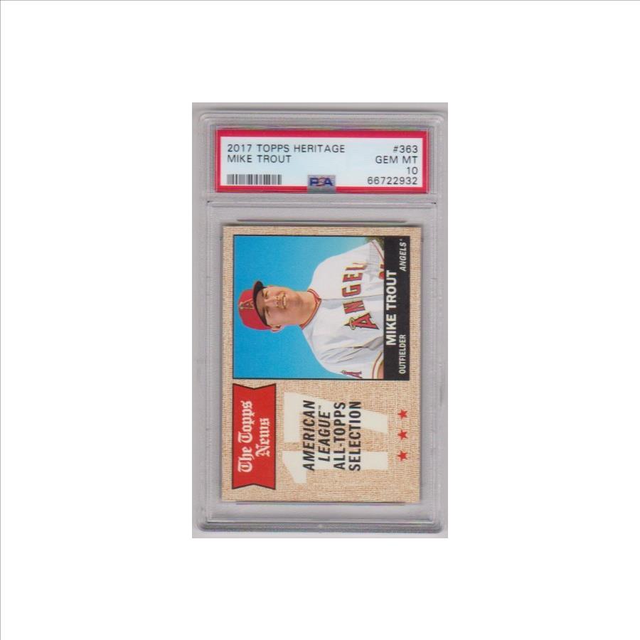 PropertyRoom.com's trusted merchant, Sports Collectibles, presents this online auction for the above Graded PSA Gem Mint 10 - Mike Trout 2017 Topps Heritage #363 Card.