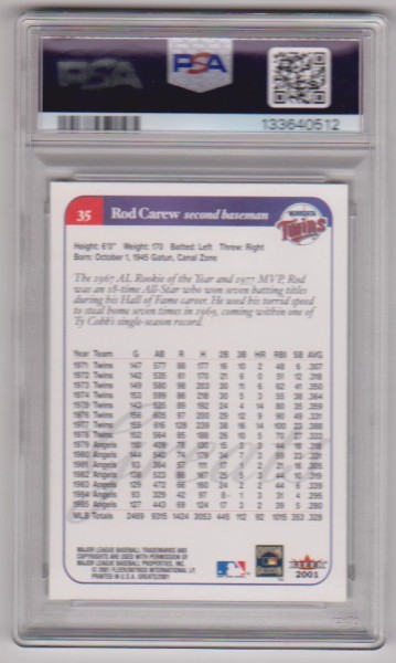 • Item #: PSA10Carew2001FGreats