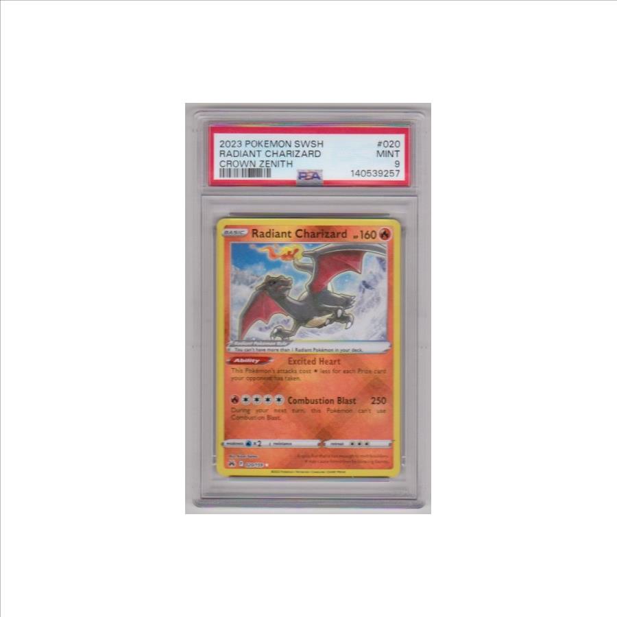 PropertyRoom.com's trusted merchant, Sports Collectibles, presents this online auction for the above Graded PSA Mint 9 - 2023 Pokemon RADIANT CHARIZARD Sword & Shield Crown Zenith #020/159 Card.