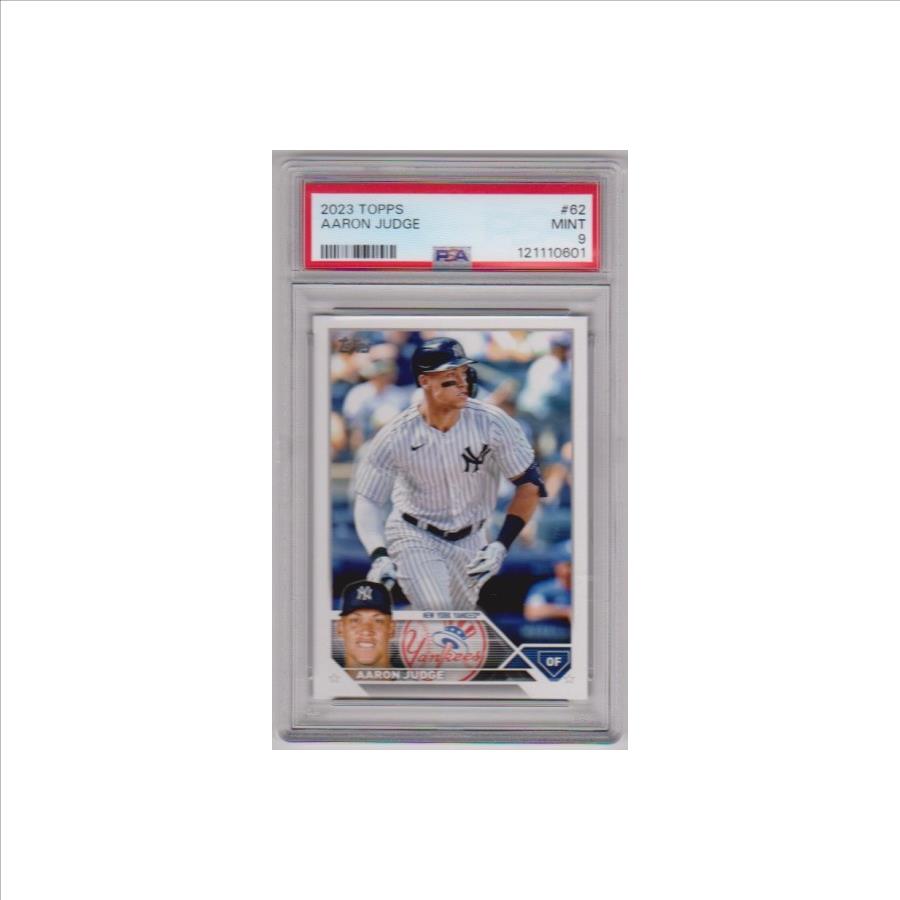 This is a Aaron Judge 2023 Topps #62 card that has been graded Mint 9 by PSA. This is a sharp graded card of this baseball star.