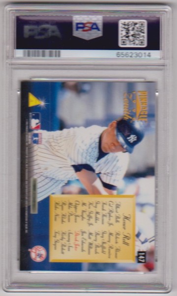 This is a Derek Jeter 1996 Pinnacle Zenith #147 card that has been graded PSA Mint 9. The holder has some very minor surface wear, but overall this is a sharp PSA graded card of this baseball Hall of Famer.