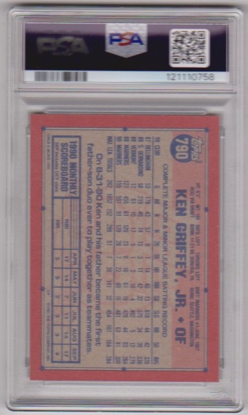 PropertyRoom.com's trusted merchant, Sports Collectibles, presents this online auction for the above Graded PSA Mint 9 - Ken Griffey, Jr. 1991 Topps #790 Card.