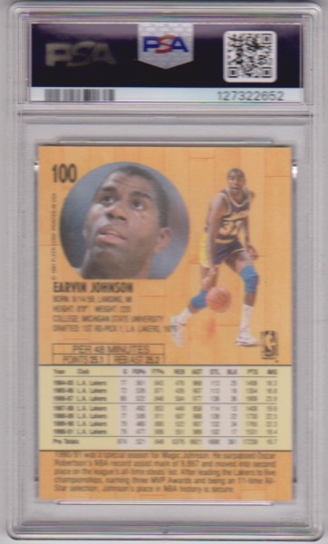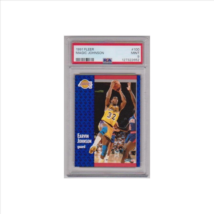 Graded PSA Mint 9 - Magic Johnson 1991-92 Fleer #100 Card.