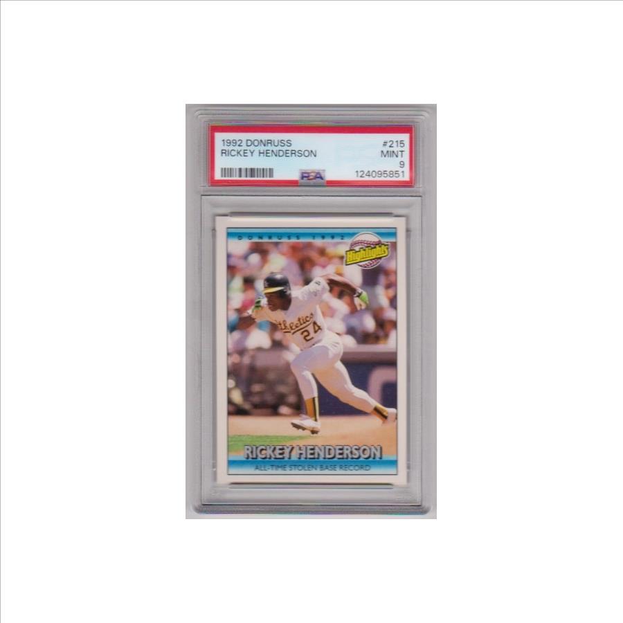 PropertyRoom.com's trusted merchant, Sports Collectibles, presents this online auction for the above Graded PSA Mint 9 - Rickey Henderson 1992 Donruss Highlights #215 Card.