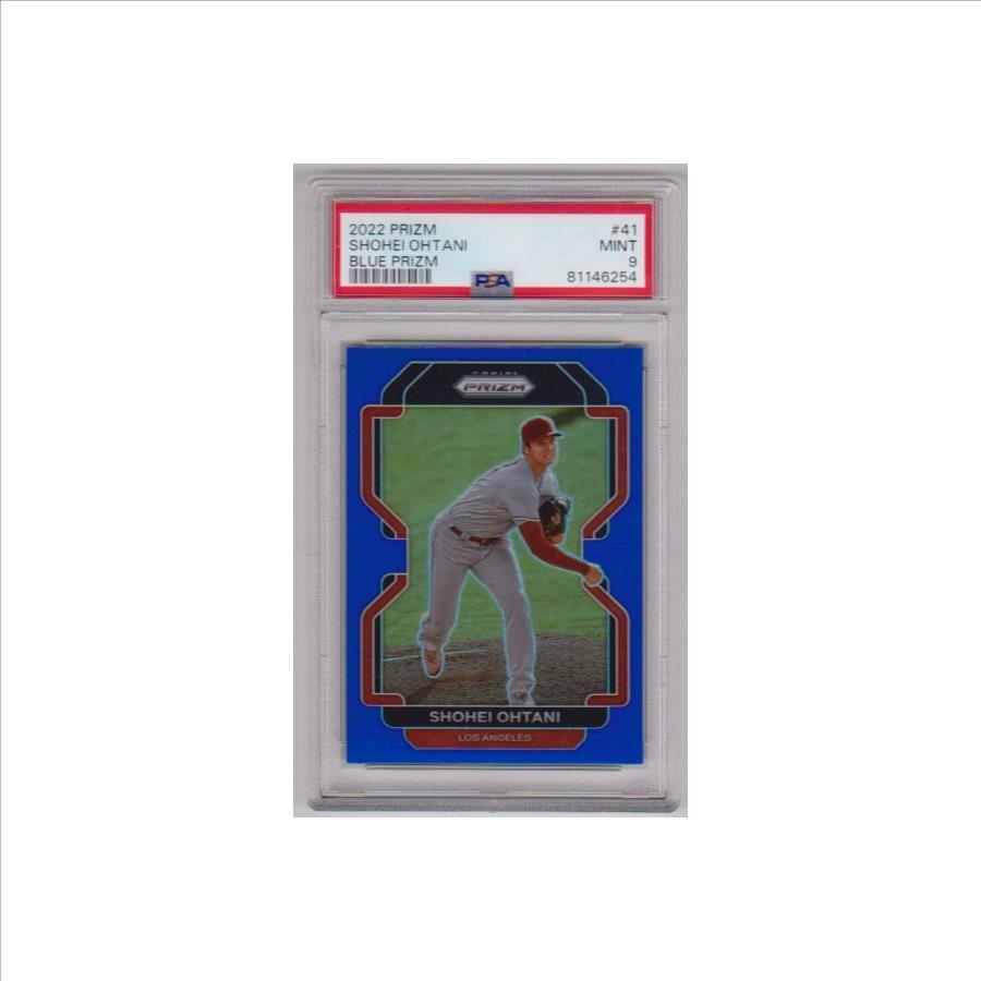 PropertyRoom.com's trusted merchant, Sports Collectibles, presents this online auction for the above Graded PSA Mint 9 - Shohei Ohtani 2022 Panini Prizm Blue Prizm #41 Parallel Card.
