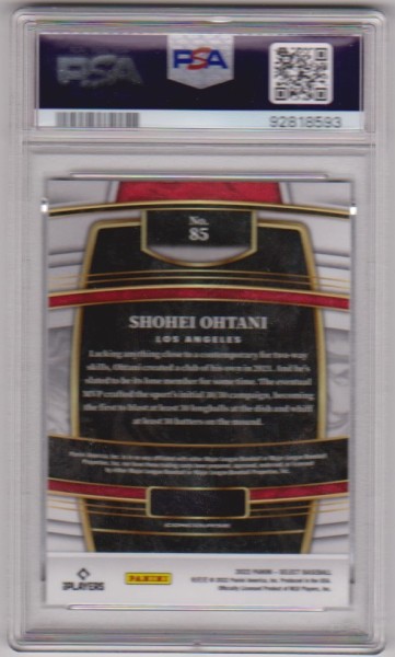 PropertyRoom.com's trusted merchant, Sports Collectibles, presents this online auction for the above Graded PSA Mint 9 - Shohei Ohtani 2022 Panini Select Blue Concourse #85 Card.
