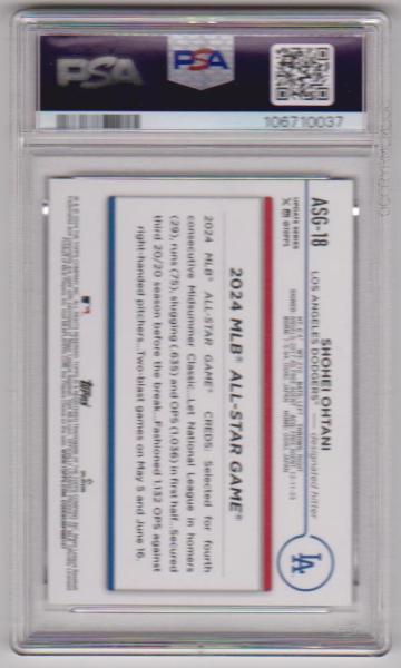 PropertyRoom.com's trusted merchant, Sports Collectibles, presents this online auction for the above Graded PSA Mint 9 - Shohei Ohtani 2024 Topps Update All-Star Game #ASG-18 Card.