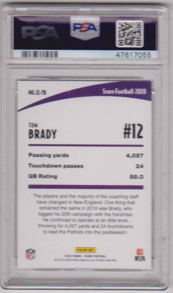 Graded PSA Mint 9 - Tom Brady 2020 Score In The Zone #IZ-TB Insert Card