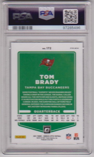 Graded PSA Mint 9 - Tom Brady 2021 Donruss Optic Holo #172 Parallel Card
