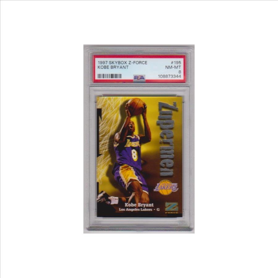PropertyRoom.com's trusted merchant, Sports Collectibles, presents this online auction for the above Graded PSA NM-MT 8 - Kobe Bryant 1997 Skybox Z-Force #195 Card.