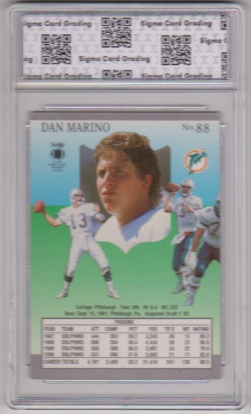 This is a Dan Marino 1991 Fleer Ultra #88 card that has been graded a Mint 9 by Sigma Grading. This is a nice looking graded card of this NFL Hall of Famer.