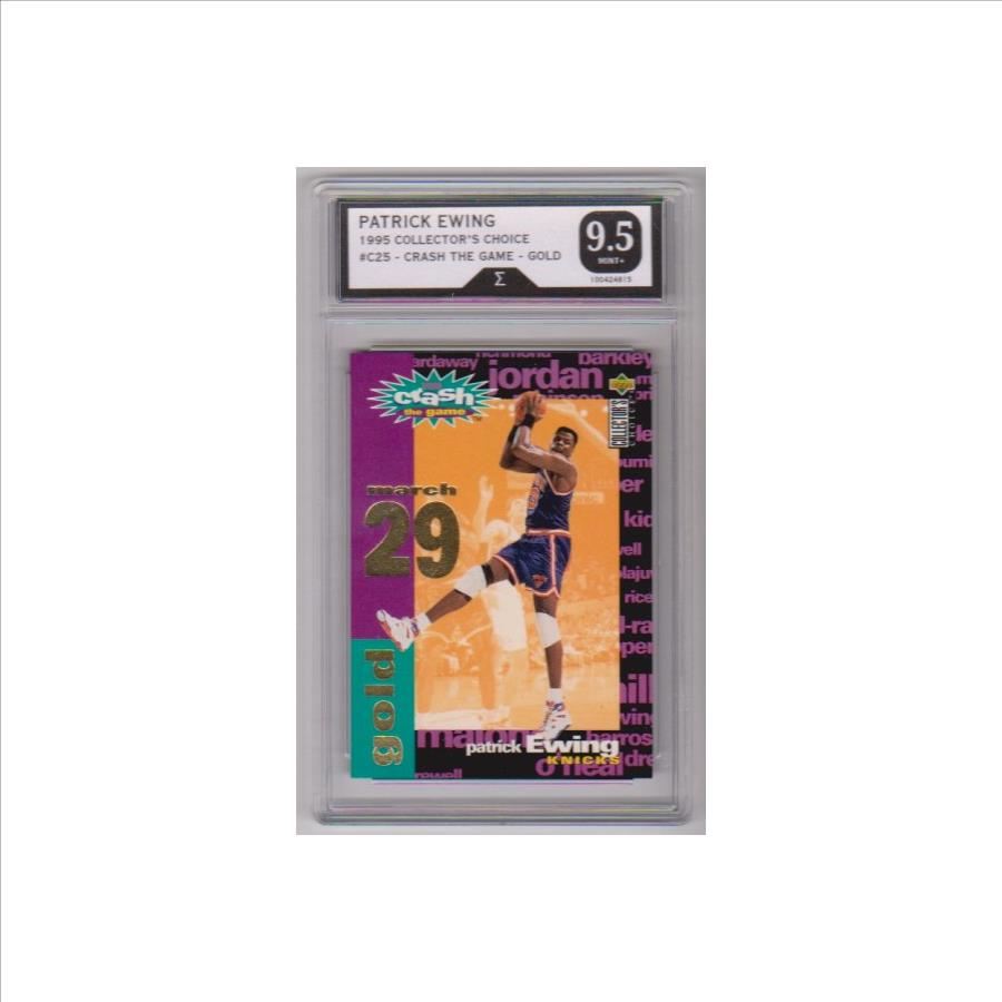 PropertyRoom.com's trusted merchant, Sports Collectibles, presents this online auction for the aboveGraded Sigma Mint+ 9.5 - Patrick Ewing 1995-96 Collector's Choice Crash The Game Gold #C25 Insert Card.