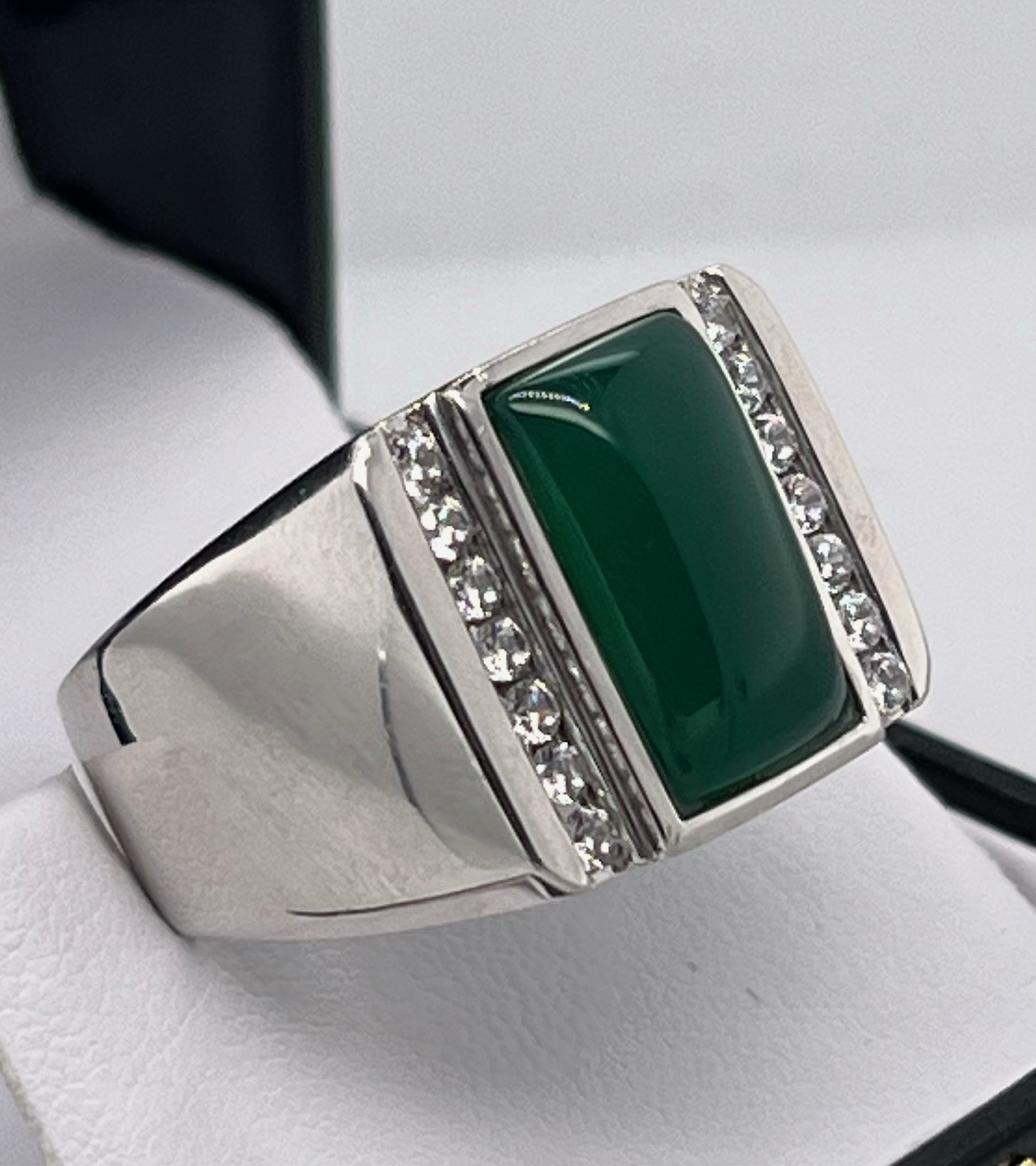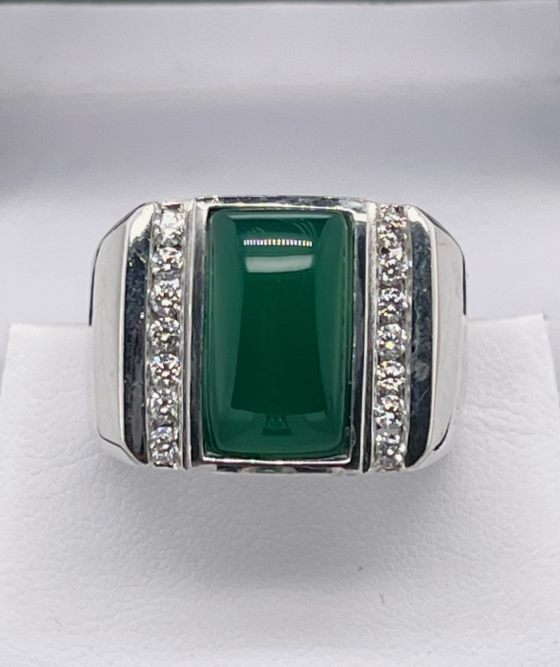 BEAUTIFUL GREEN AGATE RING AND CZ SET IN STERLING SILVER