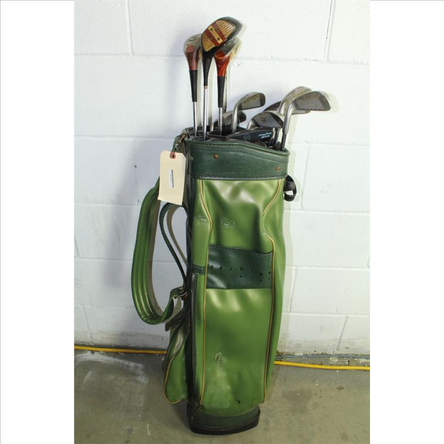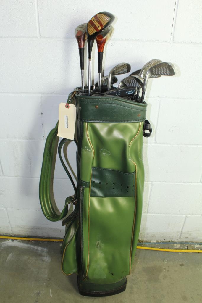 Green Golf Bag With Clubs, 13 Pieces