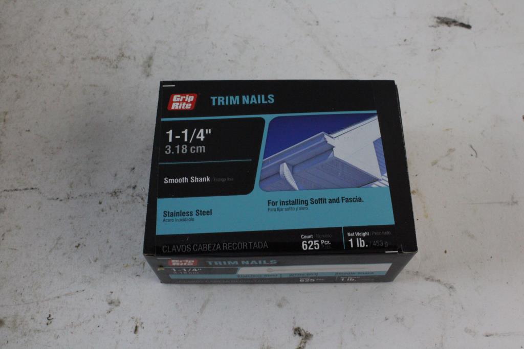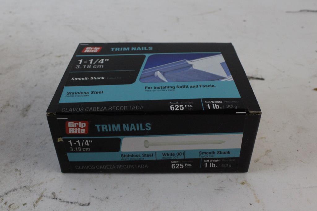 Get a great deal with this online auction for nails and more presented by Property Room on behalf of a law enforcement or public agency client. - Grip Rite trim nails, 114001WHT1