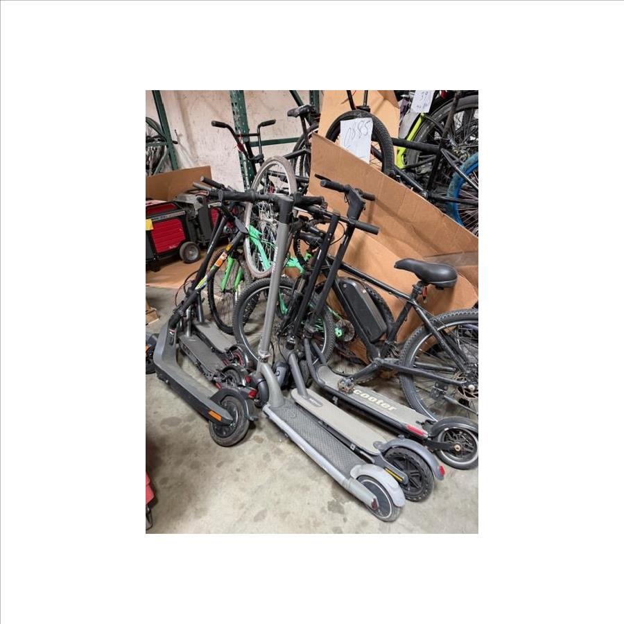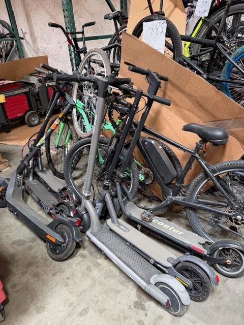 Group Of Used Electric Scooters, 6 Pieces And 2 Bikes