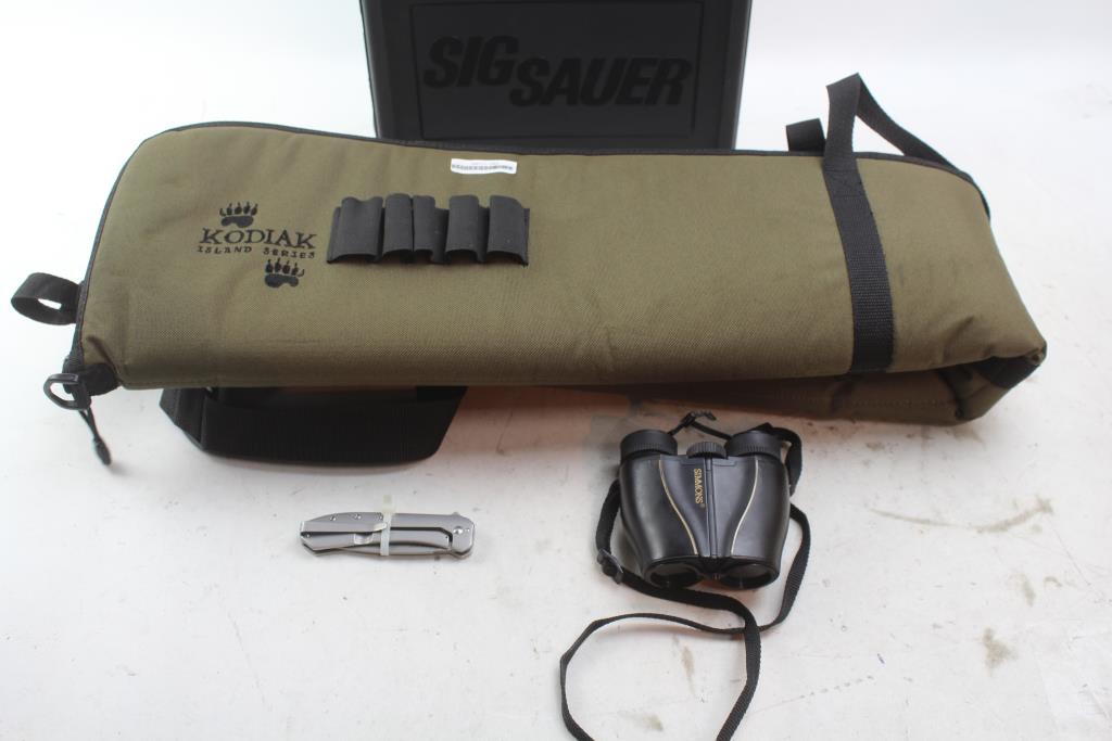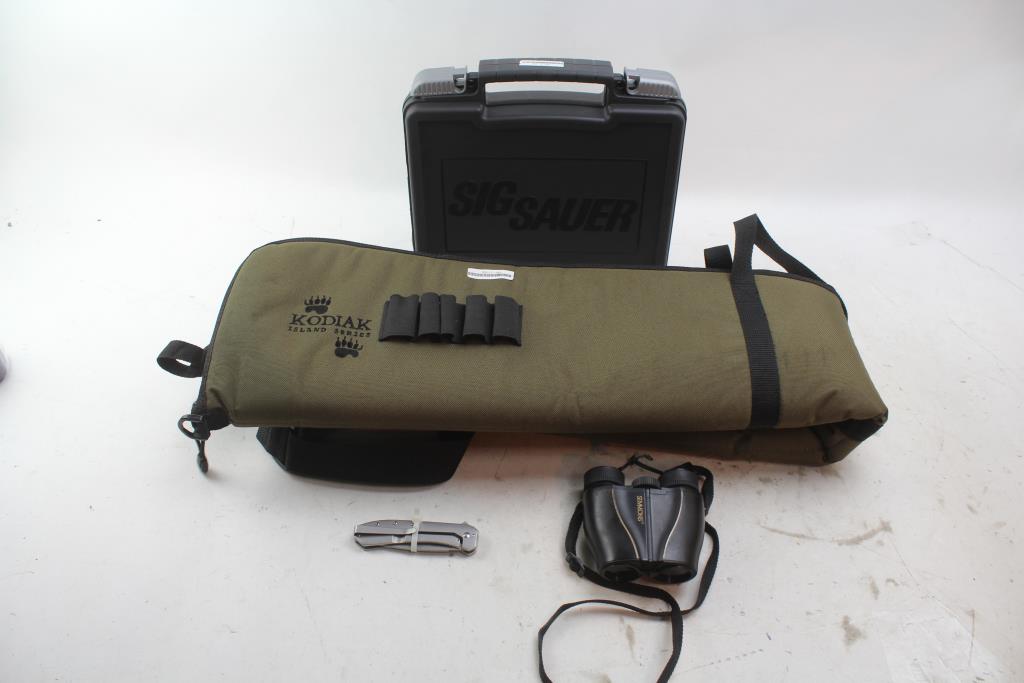 Gun Cases, Kershaw Pocket Knife, & Simmons Binoculars; 4 Pieces