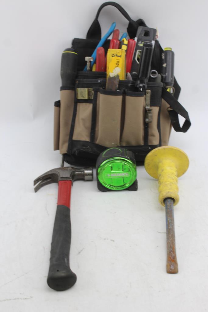 Get a great deal with this online auction for tools presented by Property Room on behalf of law enforcement or public agency client. - Hammer Measureing Tape, wire stripper, screwdriver, wrench, adjustable wrench, saw blade, putty knife, Husky Tool Pouch And More 20+ items