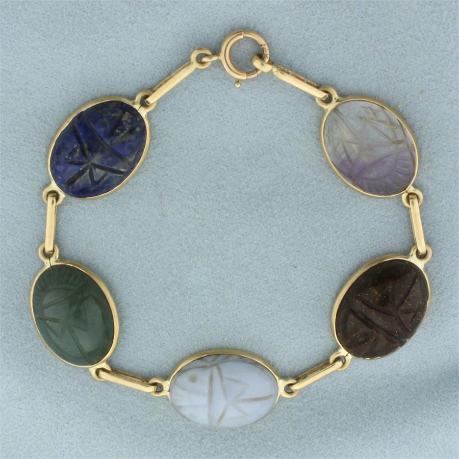 Hand Carved Gemstone Scarab Bracelet in 14k Yellow Gold