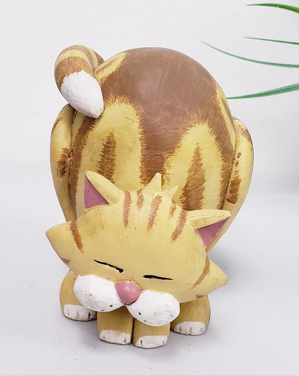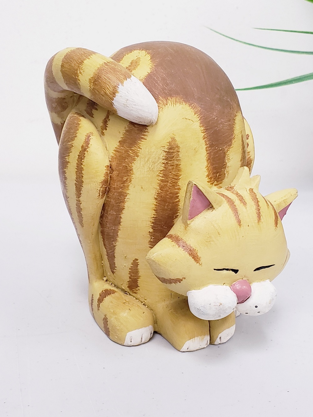 Adorable hand painted ceramic arched back pose orange Tabby cat figurine