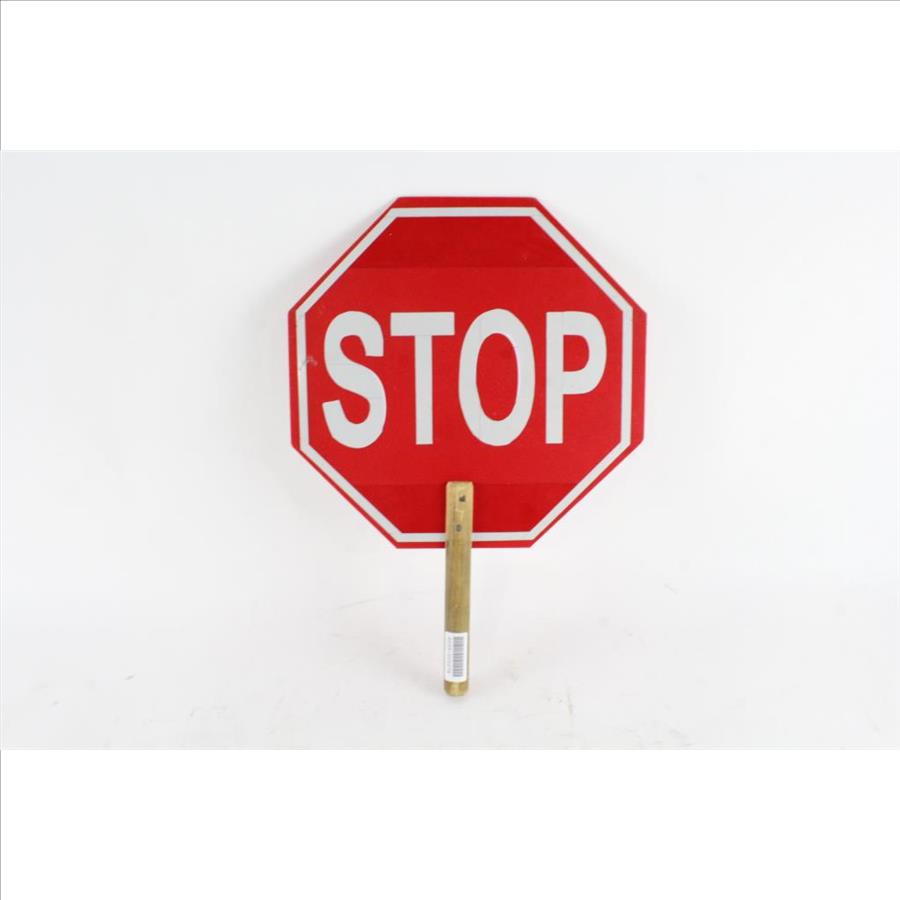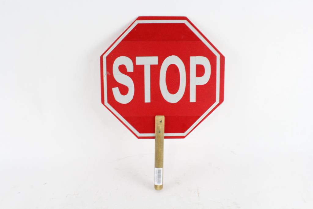 Get a great deal with this online auction for a STOP Sign presented by Property Room on behalf of a law enforcement or public agency client. - Handheld "STOP" Sign with wooden handle