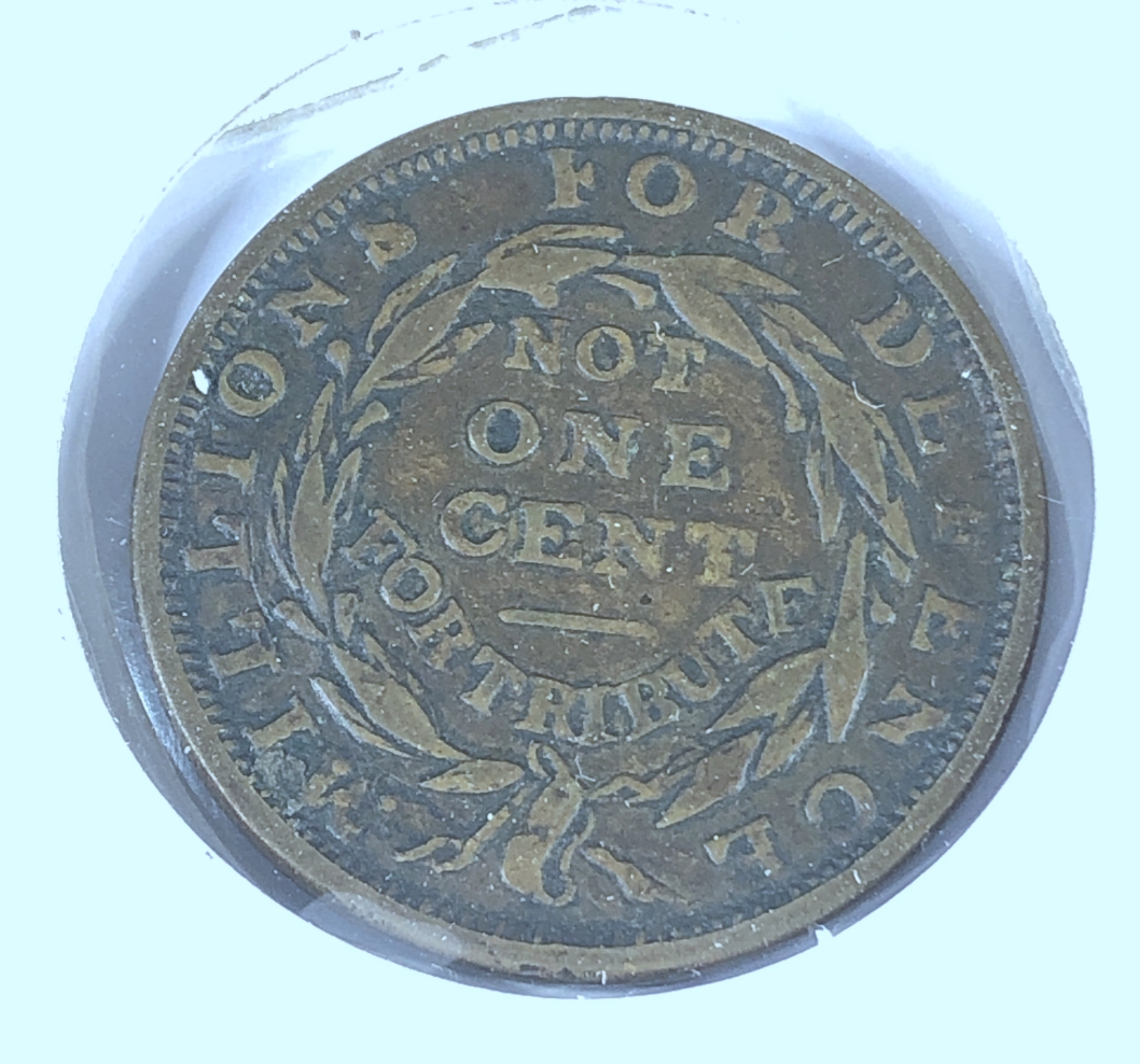 Hard Times Token Circa 1837 Millions for Defense Not One Cent for Tribute
