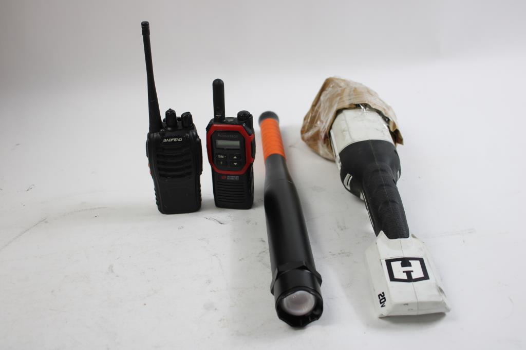 Hart Cordless Angle Grinder, Baofeng Walkie Talkie, Milwaukee Battery Pack And More, 3+ Pieces