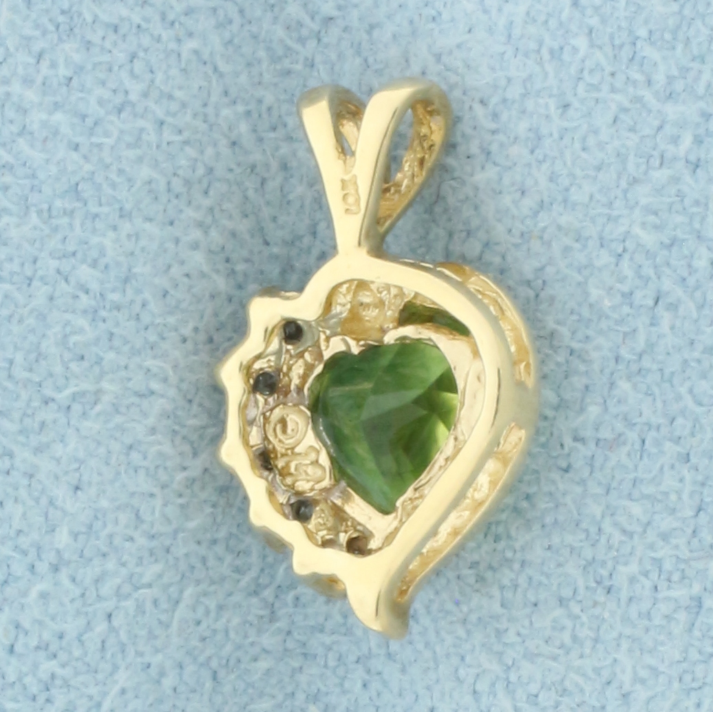 Heart Peridot and Diamond Pendant in 14k Yellow Gold
