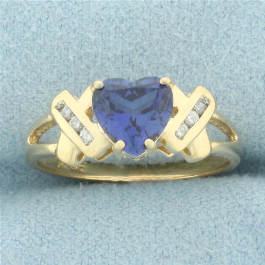 Heart Sapphire and Diamond Ring in 14k Yellow Gold