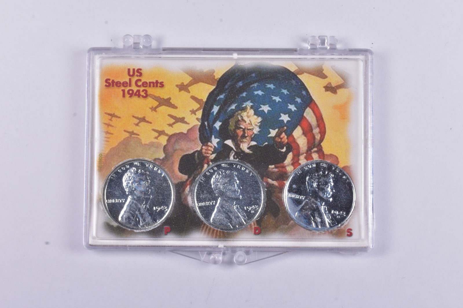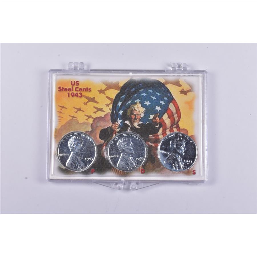 High Grade 1943 P D S Complete Set Lincoln Wheat STEEL WWII 'Silver' Penny