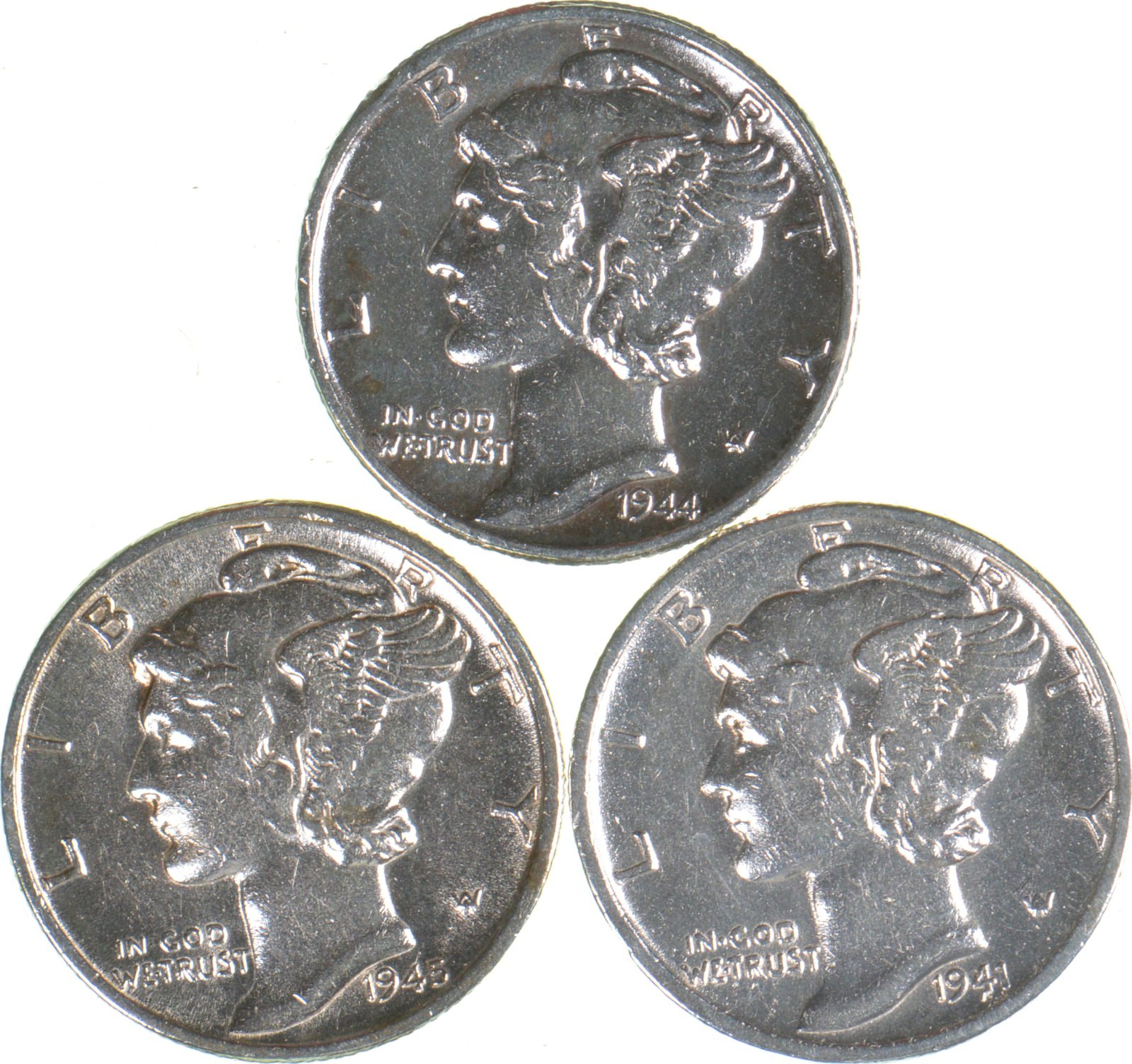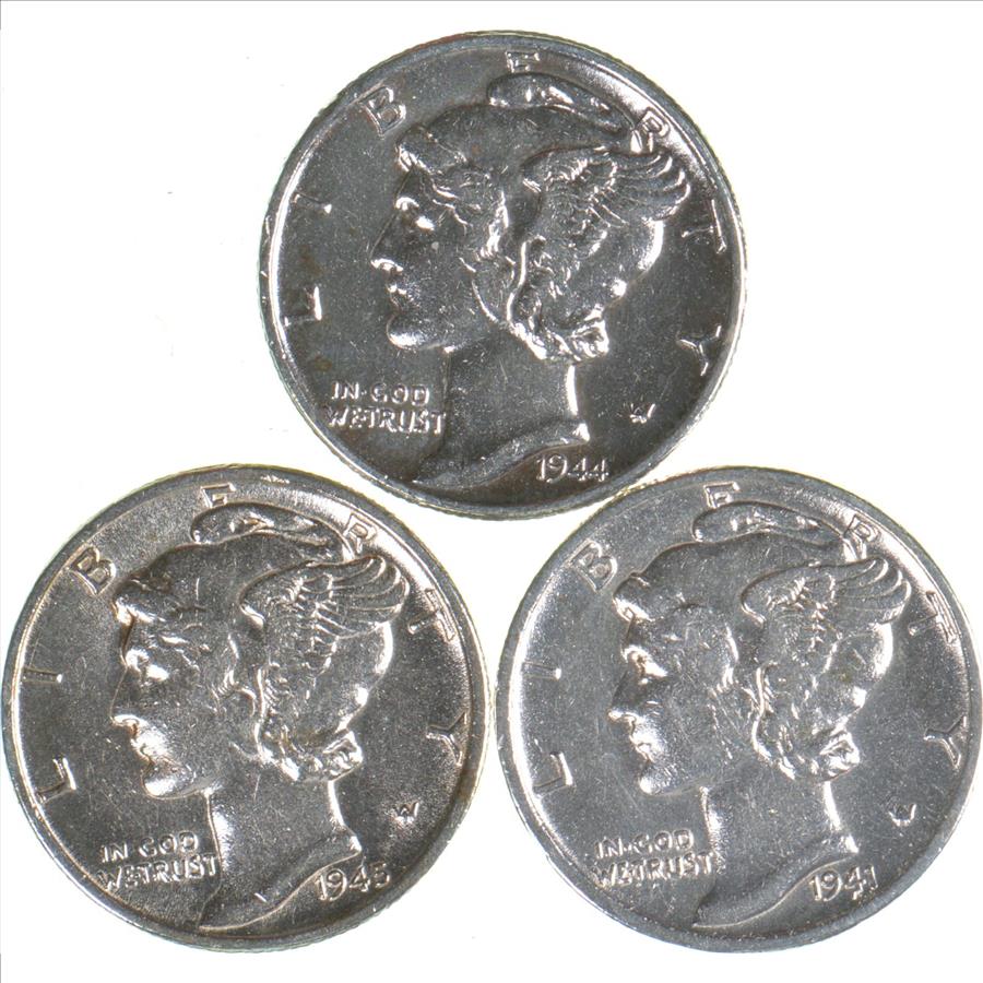 HIGH GRADE 1944 1945 1941 Mercury Silver Dime - BETTER
