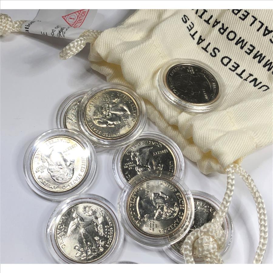 High Grade Uncirculated State Quarters (10) in Mint State Condition Protective Capsules Cloth Bag