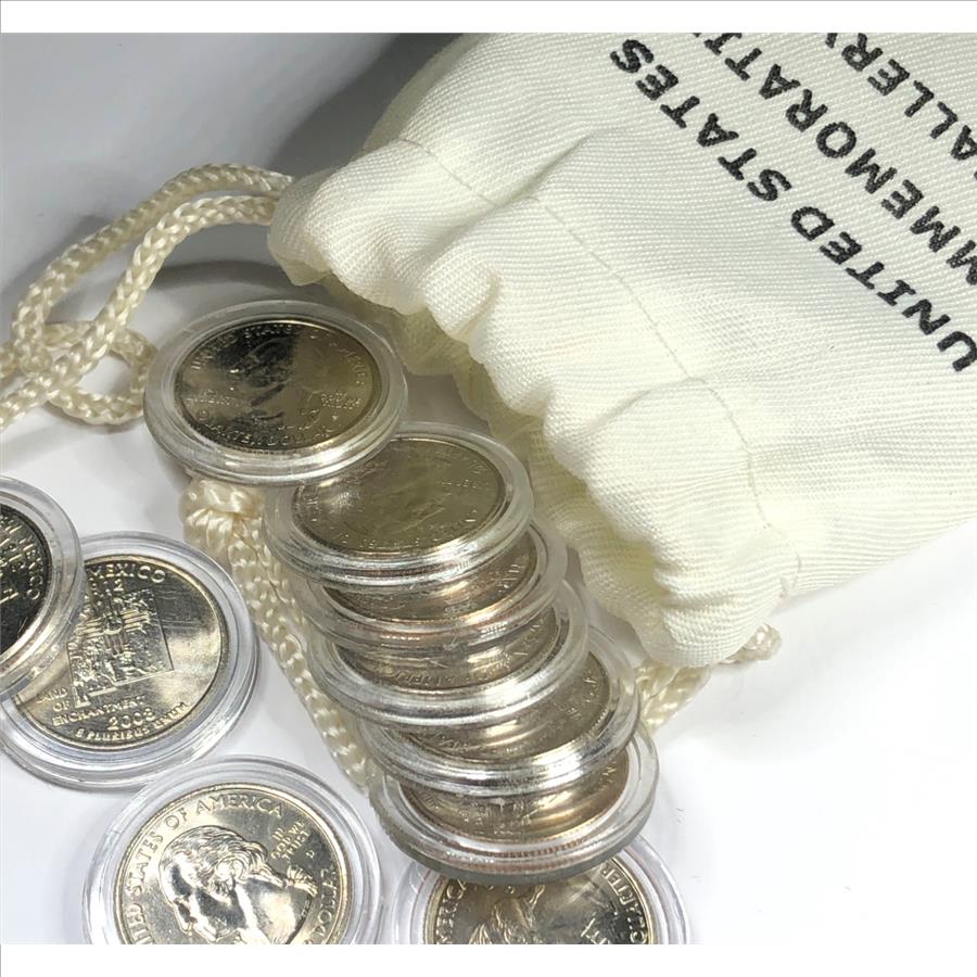 High Grade Uncirculated State Quarters (10) in Mint State Condition Protective Capsules Cloth Bag
