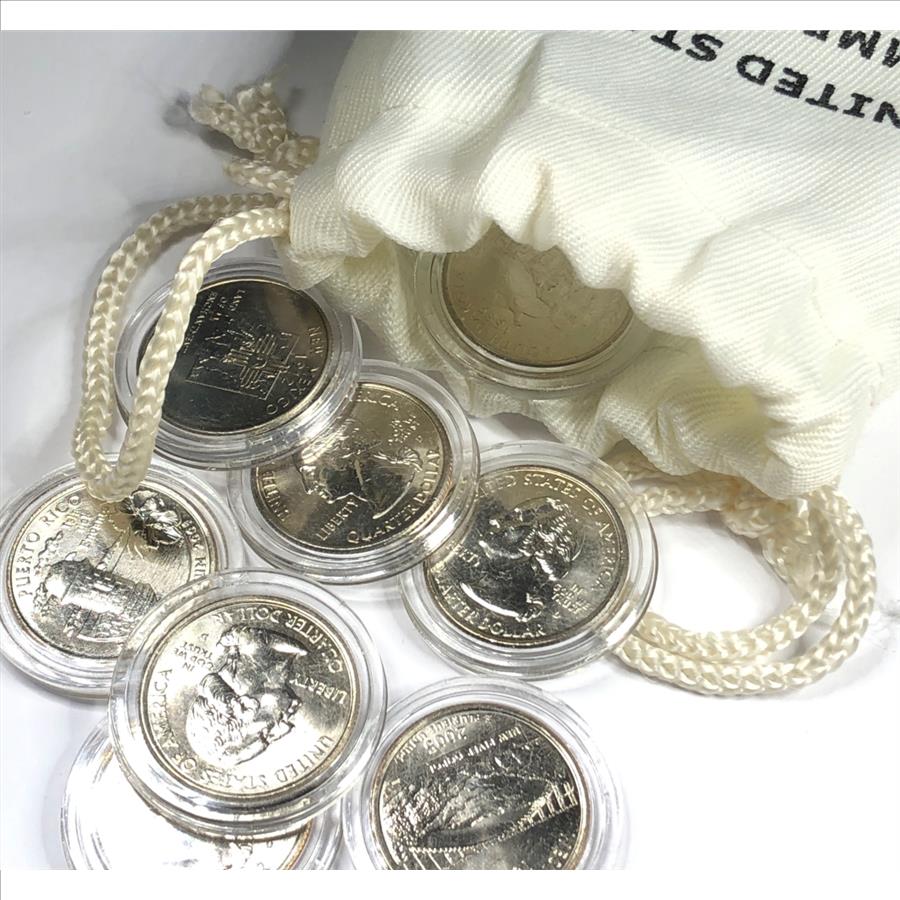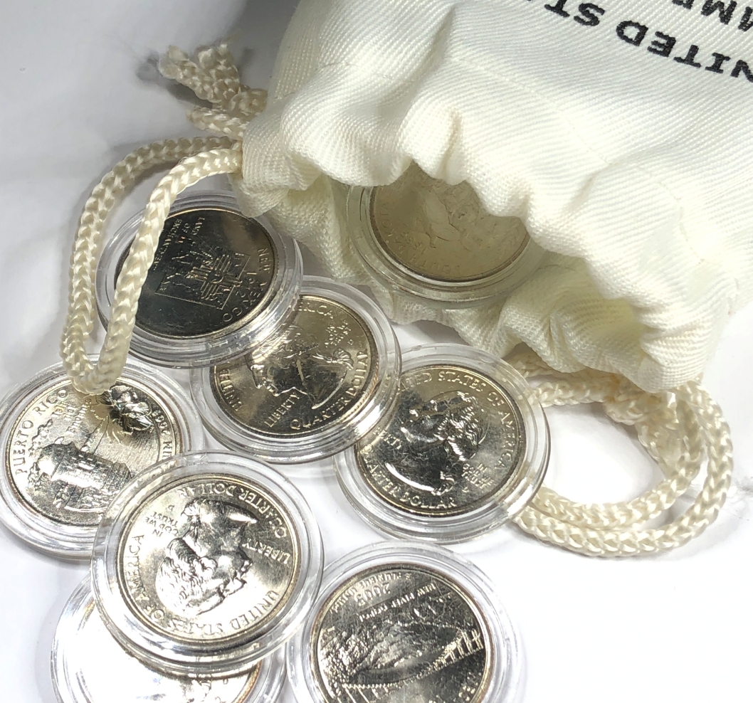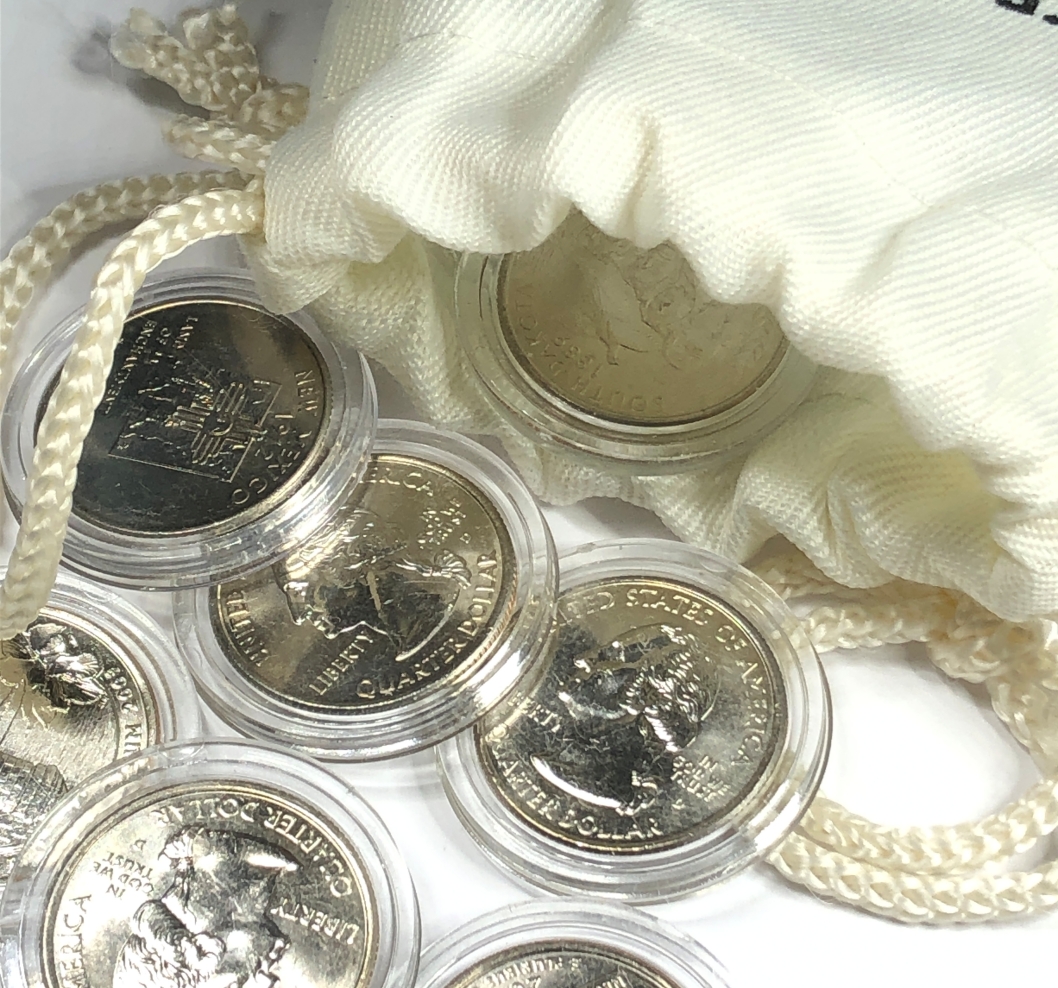 High Grade Uncirculated State Quarters (10) in Mint State Condition Protective Capsules Cloth Bag