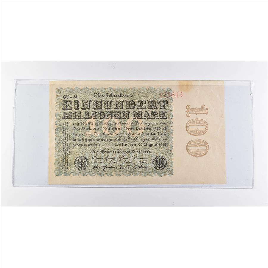 Historic World Bank Note 1923 Germany 100 Millionen Mark - Notgeld Collectible Currency