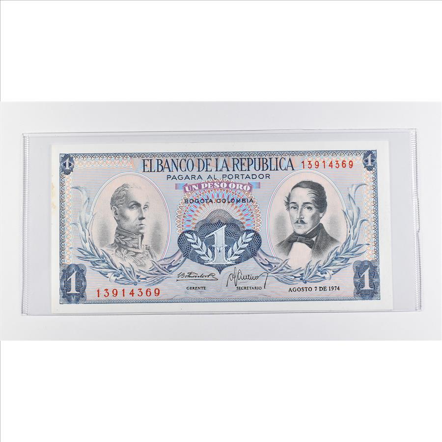 Historic World Bank Note 1974 Colombia 1 Peso Collectible Currency